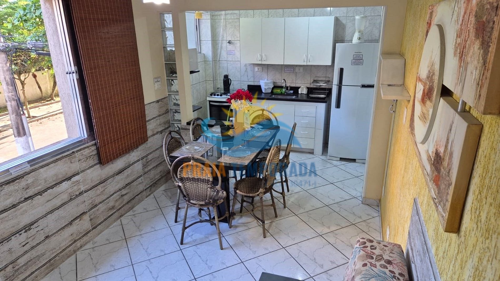 Perto de restaurante, da praia, rua tranquila, apto bem arejado