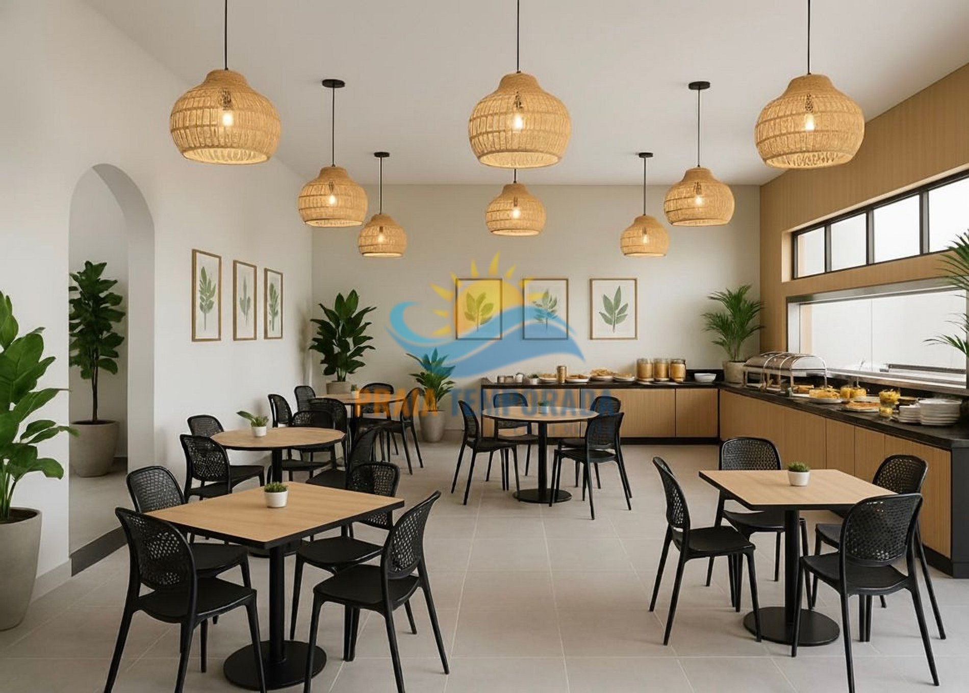 Restaurante com café da manhã incluso, servido diariamente com variedade de itens