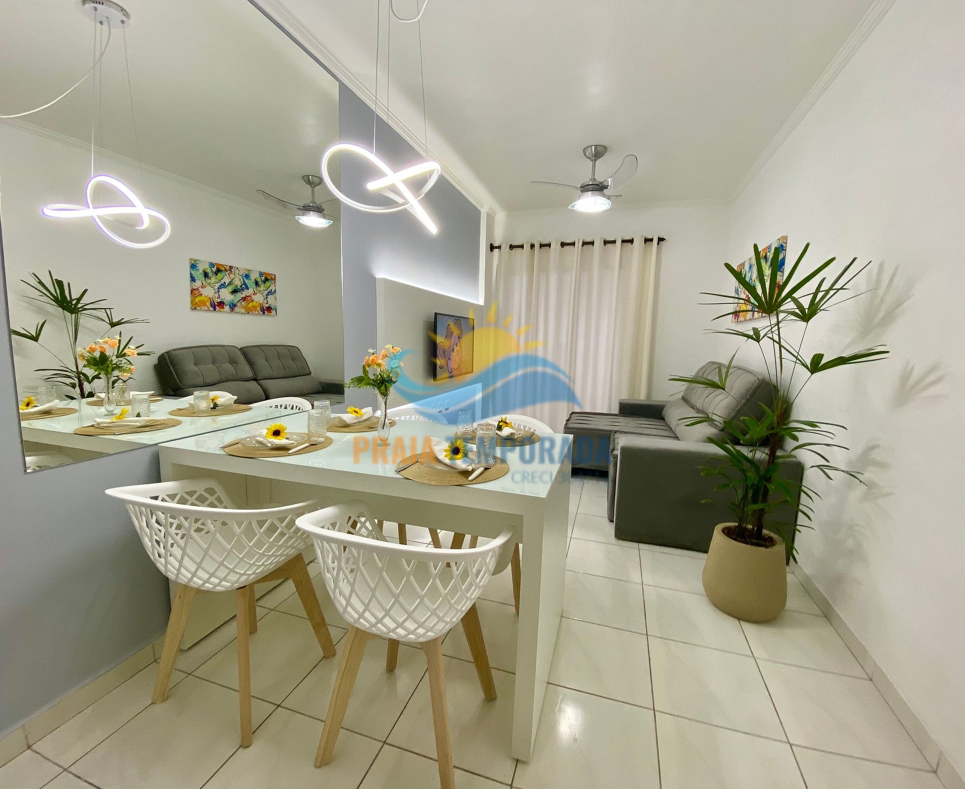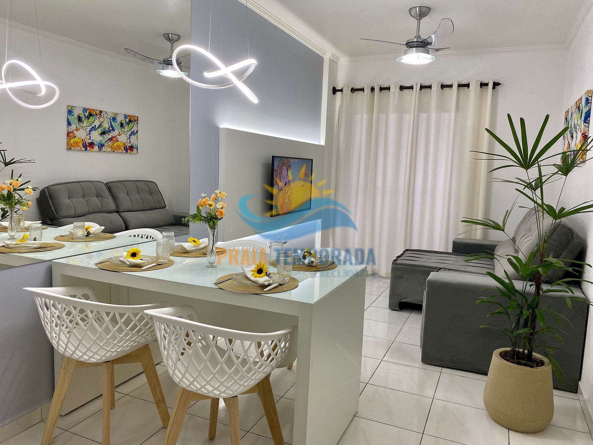 - Sala de estar com TV SMART e sala jantar;