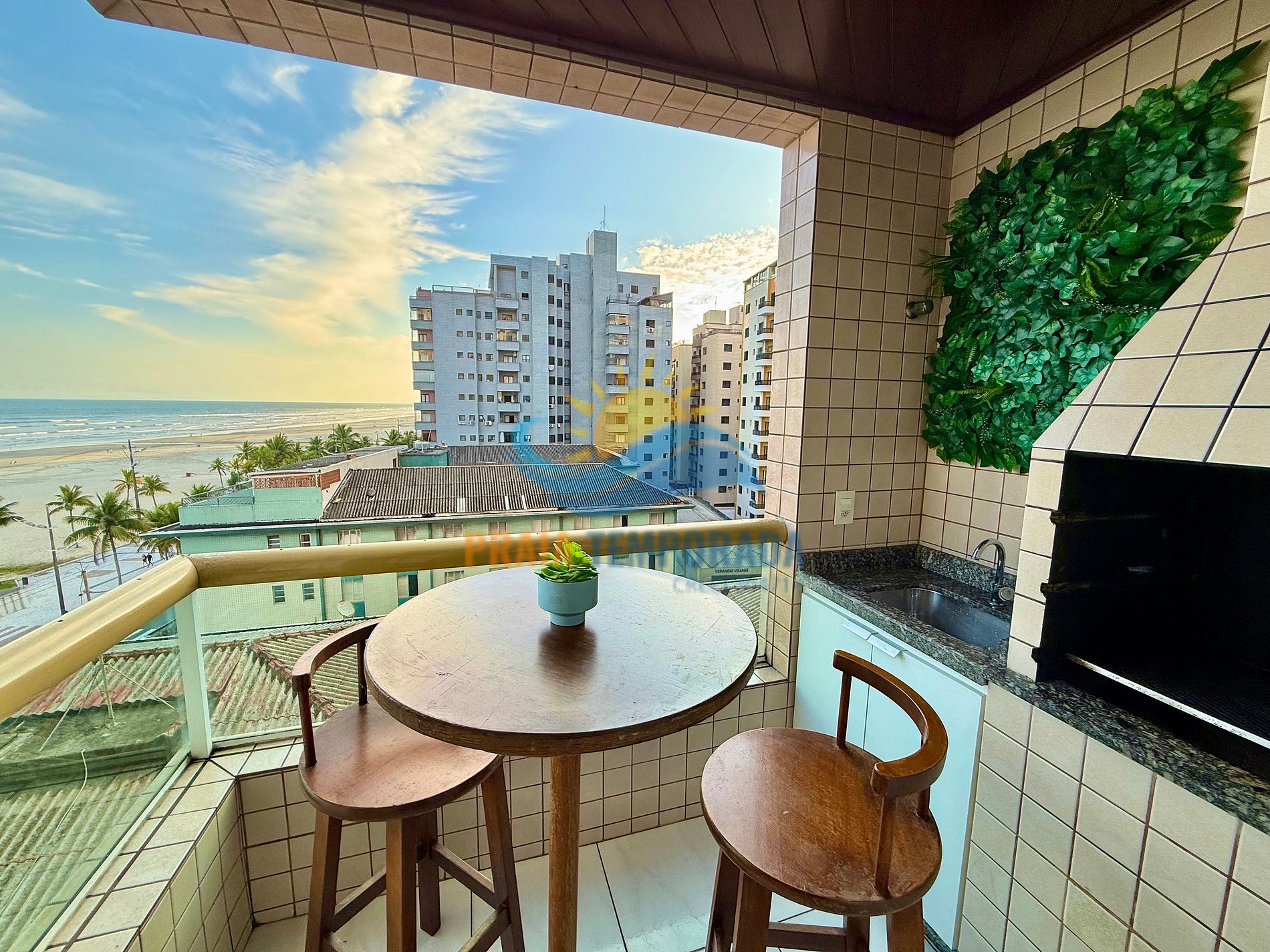 - Sacada com churrasqueira e linda vista pro mar.