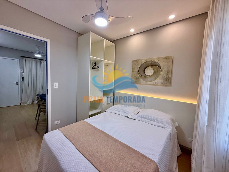 Apartamento de 1 dormitório com linda vista lateral para a praia.